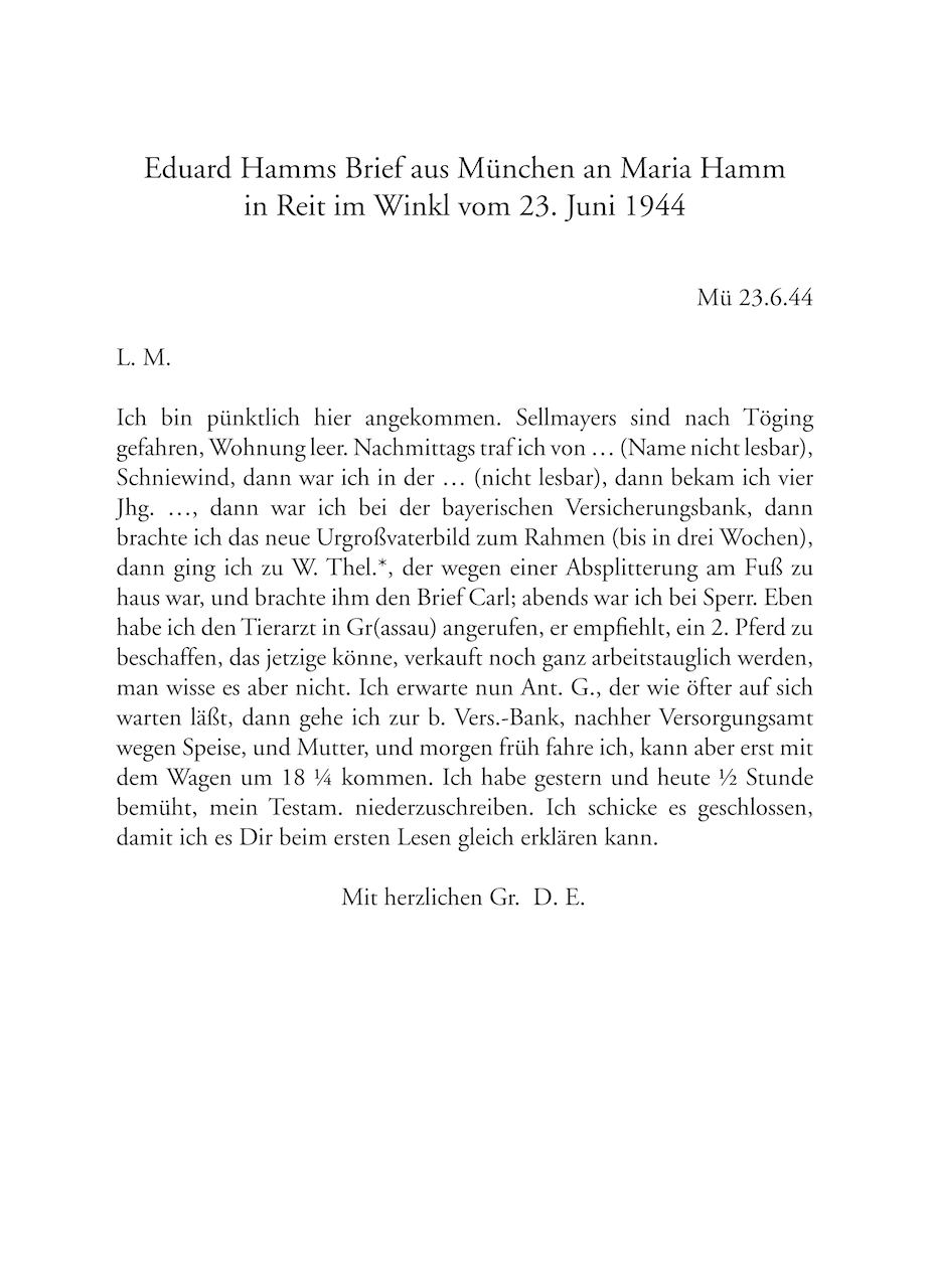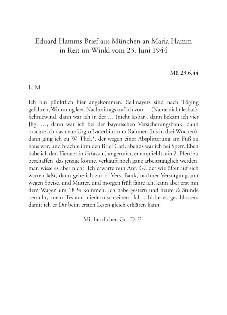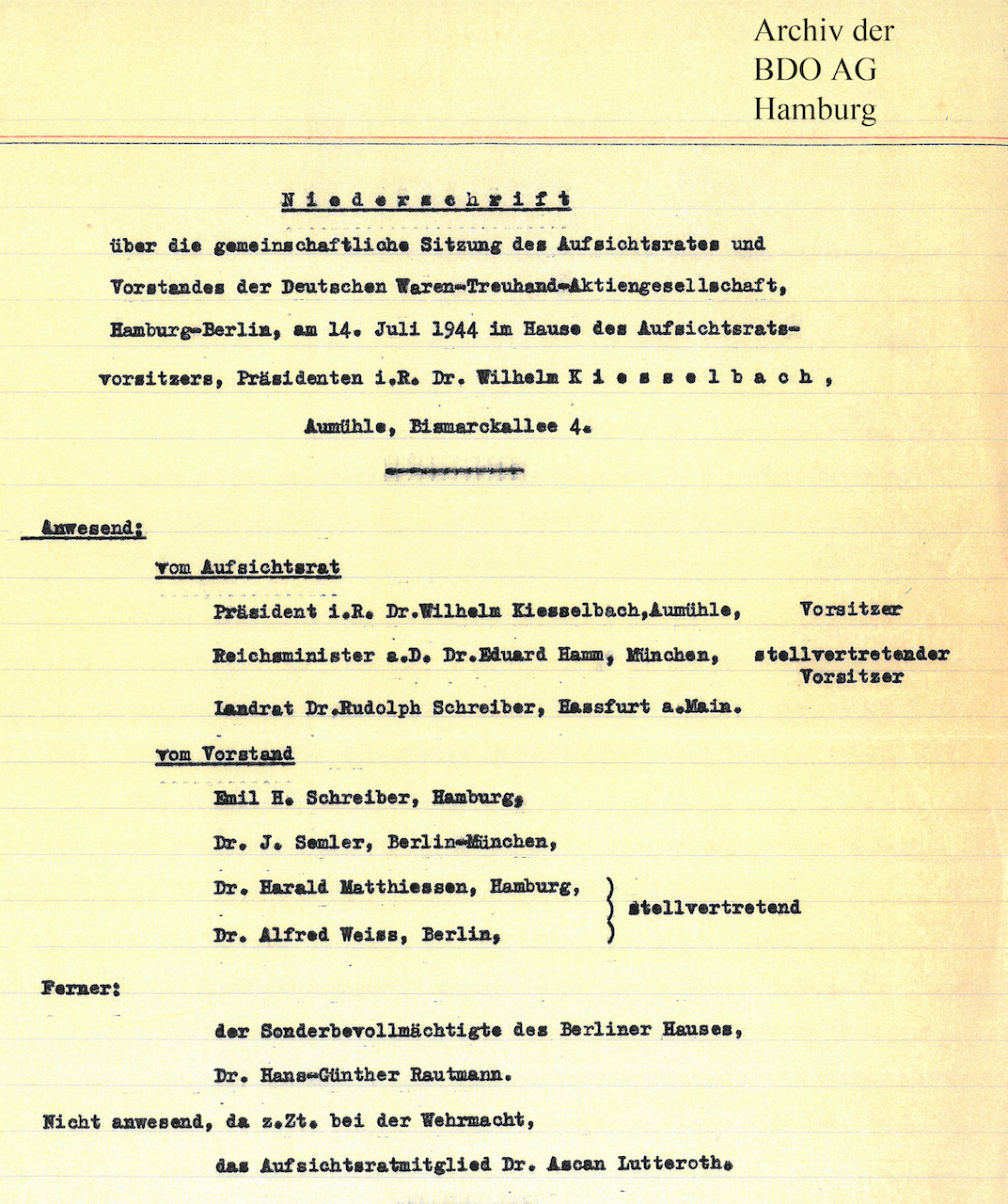 Am Wohnsitz von Dr. W. Kiesselbach in Aumühle bei Hamburg, Bismarckstraße 4, fand die gemeinsame Sitzung von Vorstand und Aufsichtsrat statt am 14. Juli 1944. Eduard Hamm war dazu von München über Berlin nach Hamburg gereist.