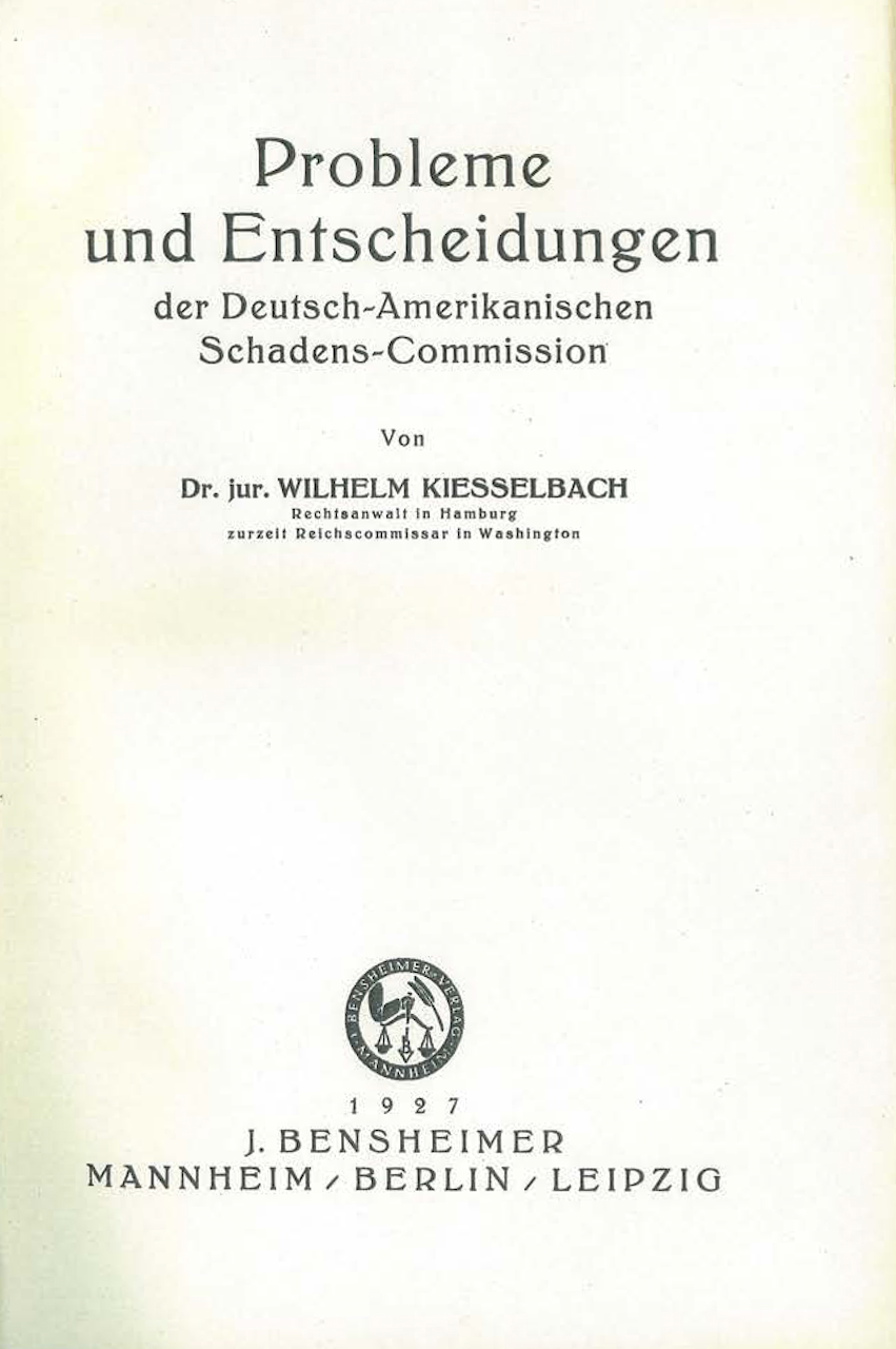 Dr. jur. h.c. Wilhelm Kiesselbach und Dr. jur. h.c. Hamm kannten sich aus der Zeit der Regierungen Dr. W. Cuno und Dr. W. Marx, 1922 - 1925. Hamm gehörte diesen Regierungen an, Kiesselbach war in dieser Zeit Reichskommissar in Washington. Die Commission hatte zu entscheiden über alle Ansprüche, die den Vereinigten Staaten oder ihren Staatsangehörigen seit dem 31. Juli 1914 infolge des Krieges entstanden waren. *Kiesselbach war in der Schadens-Commission der deutsche Vertreter.