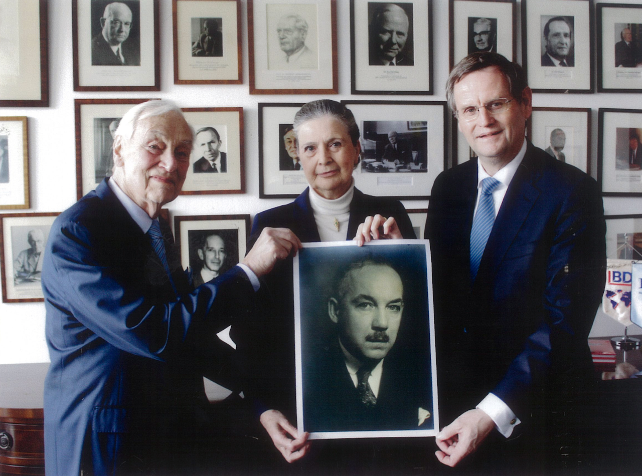 Professor Hans-Heinrich Otte, langjähriges Vorstandsmitglied, langjähriger Vorstand, Aufsichtsratsvorsitzender und Ehrenvorsitzender der BDO DEUTSCHE WAREN-TREUHAND AG, hat in der Festschrift von 1995 an Eduard Hamms Wirken erinnert - und (fast) 70 Jahre nach der ersten Nachkriegssitzung wurde am 24.11.2016 der Gesellschaft in persona des Ehrenvorsitzenden und des Vorsitzenden des Vorstands Dr. Holger Otte, Rechtsanwalt und Wirtschaftsprüfer, von Christine Beßner das Porträt ihres Großvaters für die Galerie der Aufsichtsratsmitglieder übergeben.